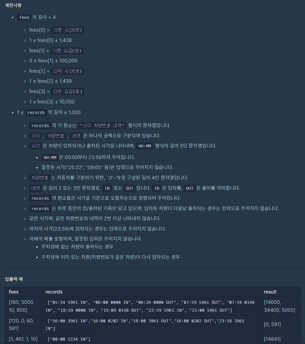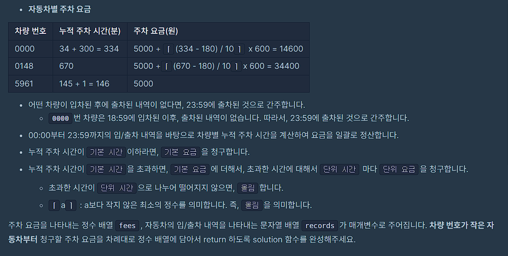 * 4.출차 기록이 없는 건들은 23:59분을 출차시간으로 기록해 계산한다.