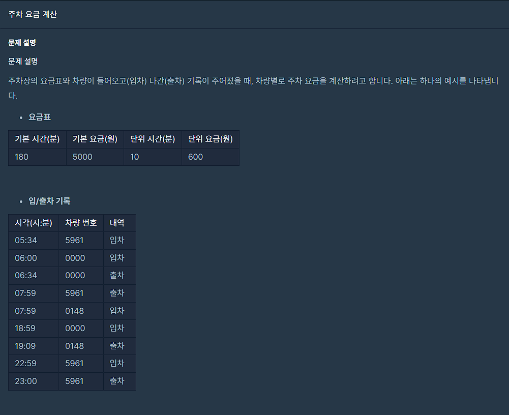 * 주차 요금 계산