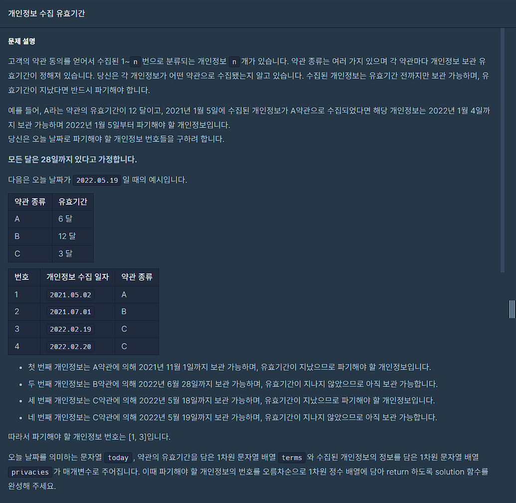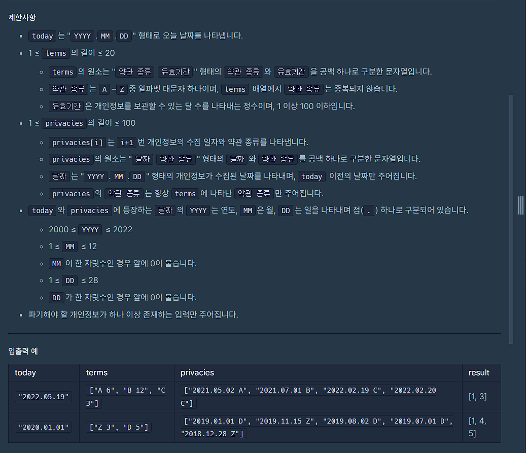 public int[] solution(String today, String[] terms, String[] privacies) {
