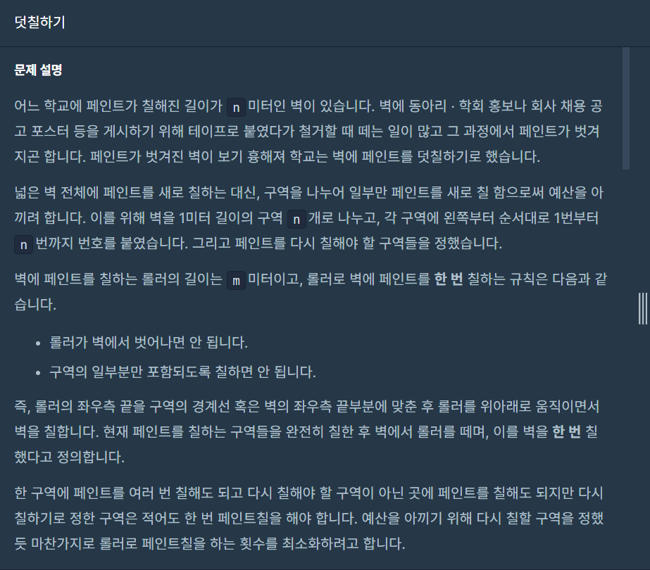 1) 덧칠되는구역 = 덧칠이 필요한 구역 + 롤러의 길이 - 1