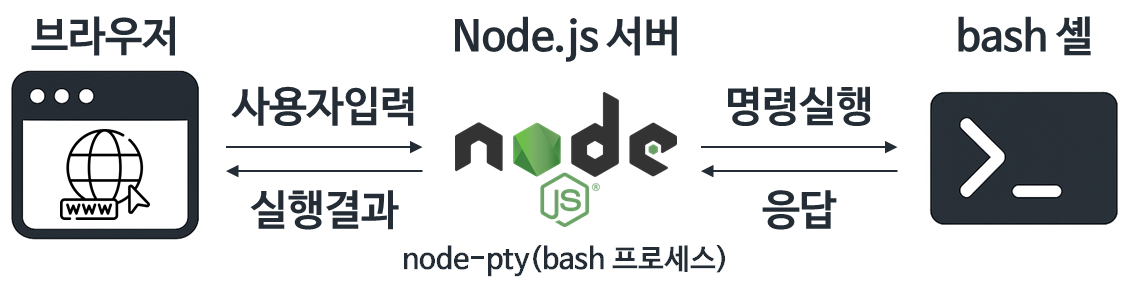 `Node.js`, `WebSocket`, `node-pty`, 그리고 `xterm.js`를 활용하여 구현했습니다.