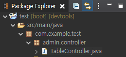 ※ 저는 src/main/java/com/example/프로젝트명/admin/controller/TableController.java를 만들었습니다.