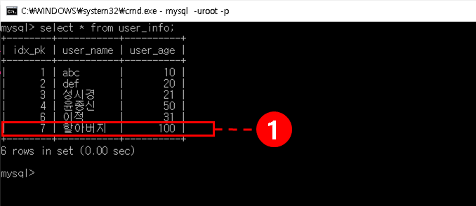 ※ 데이터베이스명 : ccs / 테이블명 : user_info