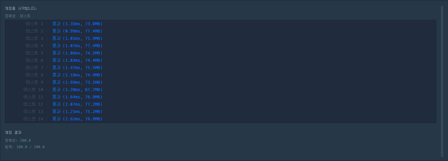 | 문제설명 수포자는 수학을 포기한 사람의 준말입니다. 수포자 삼인방은 모의고사에 수학 문제를 전부 찍으려 합니다. 수포자는 1번 문제부터 마지막 문제까지 다음과 같이 찍습니다. 1번 수포자가 찍는 방식: 1, 2, 3, 4, 5, 1, 2, 3, 4, 5, ... 2번 수포자가 찍는 방식: 2, 1, 2, 3, 2, 4, 2, 5, 2, 1, 2, 3, 2, 4, 2, 5, ... 3번 수포자가 찍는 방식: 3, 3, 1, 1, 2, 2, 4, 4, 5, 5, 3, 3, 1, 1, 2, 2, 4, 4, 5, 5, ... 1번 문제부터 마지막 문제까지의 정답이 순서대로 들은 배열 answers가 주어졌을 때, 가장 많은 문제를 맞힌 사람이 누구인지 배열에 담아 return 하도록 solution 함수를 작성해주세요. 제한 조건