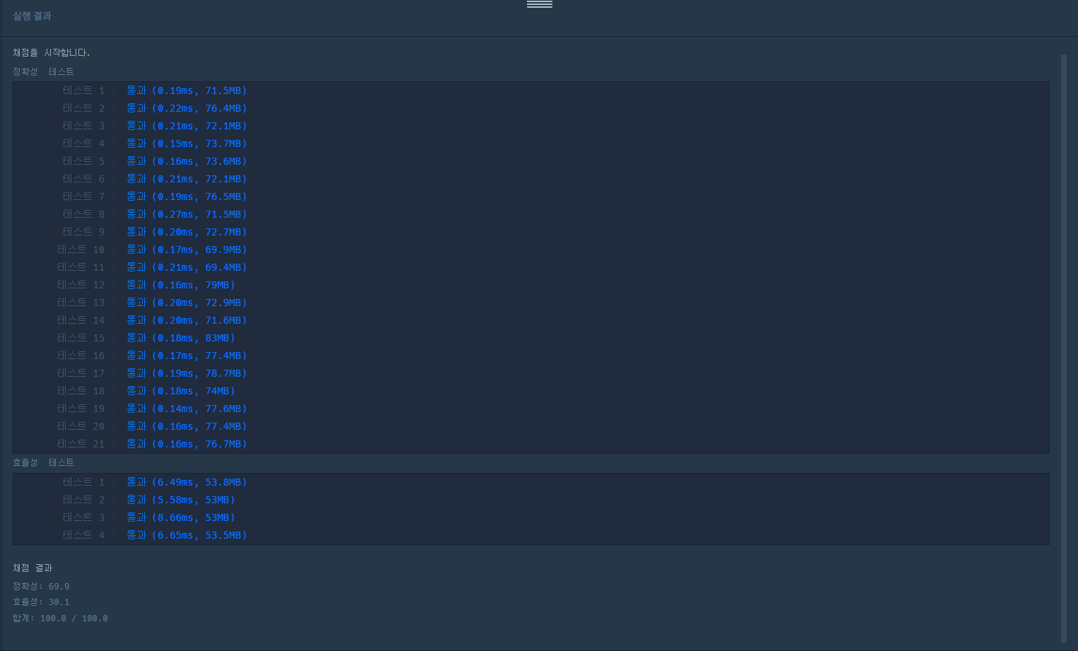![]() 위 예시에서는 첫 번째 방법보다 더 빠르게 상대팀 진영에 도착하는 방법은 없으므로, 이 방법이 상대 팀 진영으로 가는 가장 빠른 방법입니다. 만약, 상대 팀이 자신의 팀 진영 주위에 벽을 세워두었다면 상대 팀 진영에 도착하지 못할 수도 있습니다. 예를 들어, 다음과 같은 경우에 당신의 캐릭터는 상대 팀 진영에 도착할 수 없습니다. ![]() 게임 맵의 상태 maps가 매개변수로 주어질 때, 캐릭터가 상대 팀 진영에 도착하기 위해서 지나가야 하는 칸의 개수의 최솟값을 return 하도록 solution 함수를 완성해주세요. 단, 상대 팀 진영에 도착할 수 없을 때는 -1을 return 해주세요. 제한사항